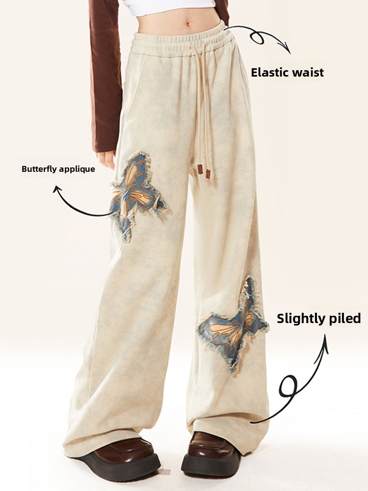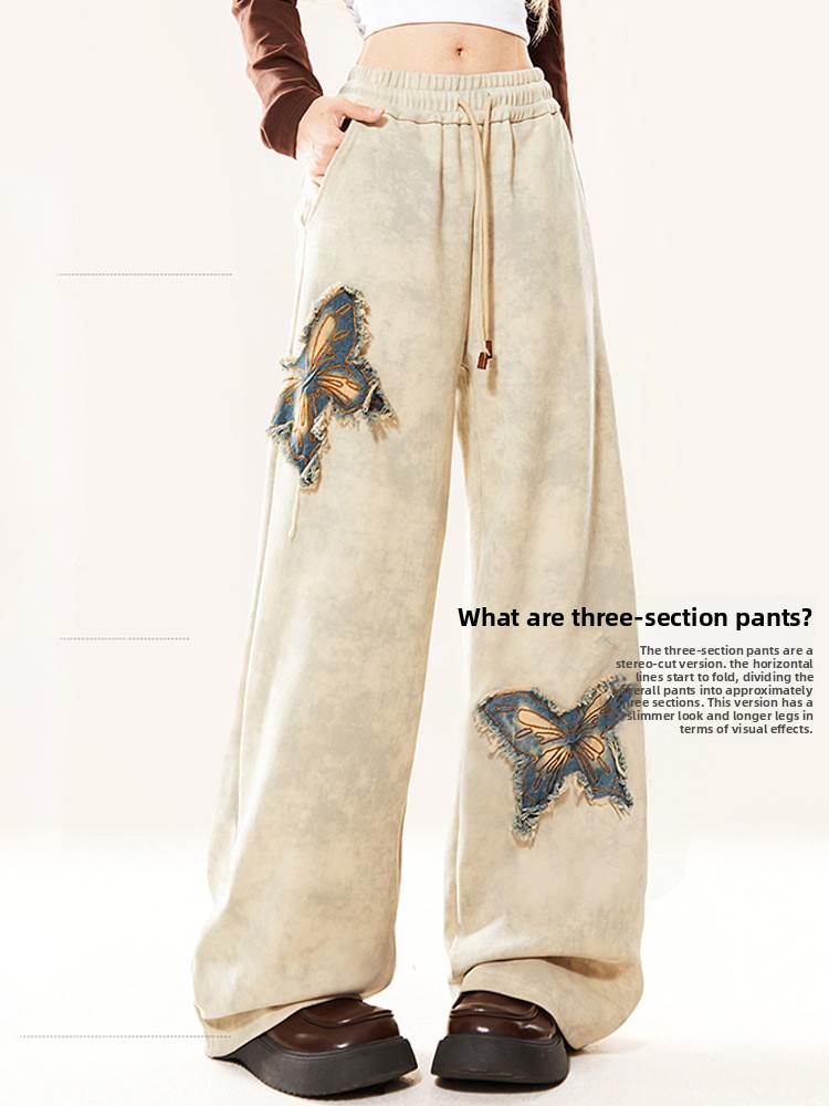 Butterfly embroidery straight-leg pants